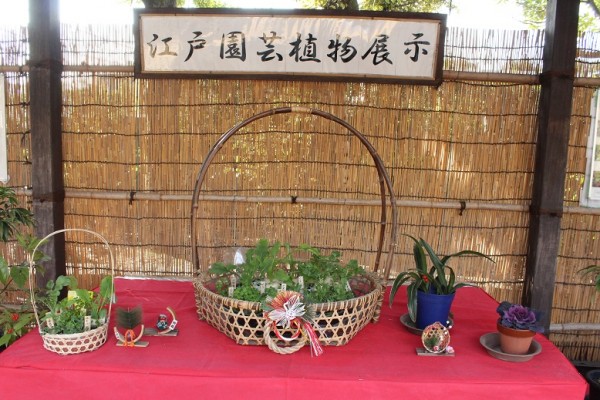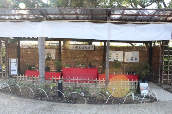 入口を入ると正面の奥に江戸園芸植物展示があります。