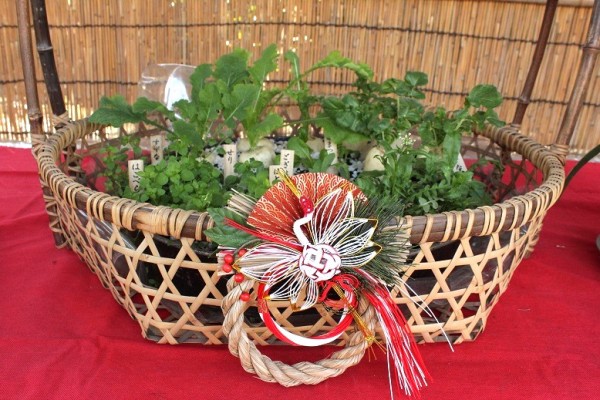 そんな七草をご覧になれる「春の七草展」が江戸川区の一之江抹香亭(一之江五丁目13番16号)で行われています。(1月7日まで)春の七草に江戸川区特産の「〇〇〇〇」を加えた寄せ植えが展示されていますのでご紹介しましょう!