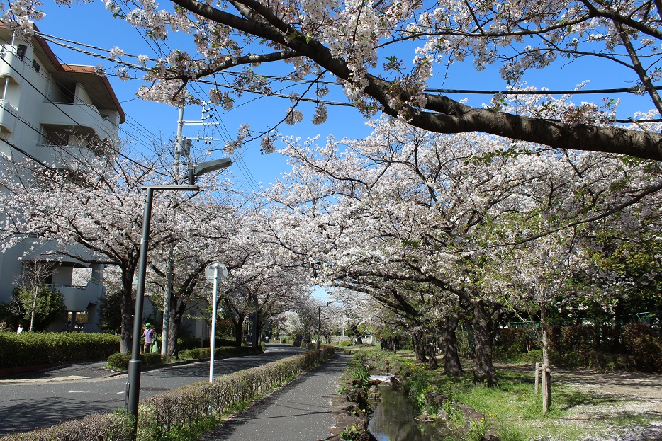篠田堀親水緑道では迫力のある桜吹雪の風景を♪
