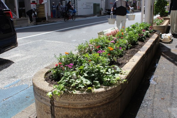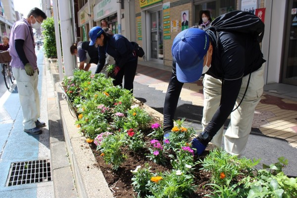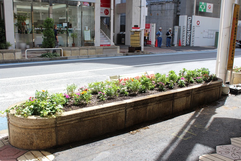 9月22日、小岩フラワーロード商店街(江戸川区南小岩5丁目、6丁目)の花壇にお花を植えました。