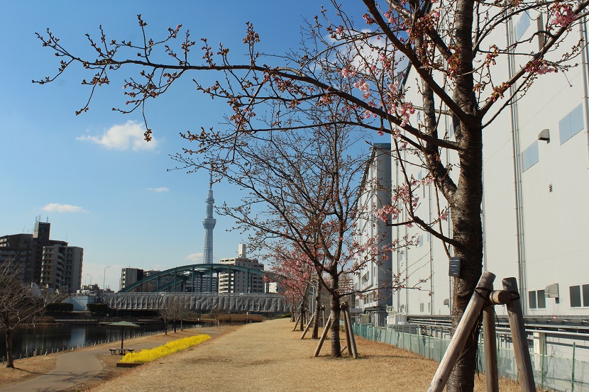 2月2日、旧中川(えどがわマップリンク)を見に行くと河津桜も咲き始めていました。