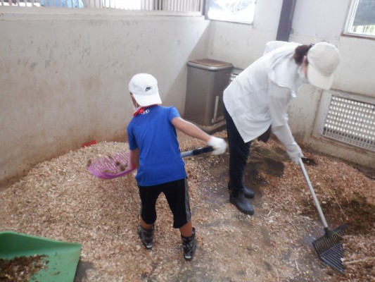 親子でポニーのお部屋の掃除・エサつくり・お手入れ(ブラッシング)など