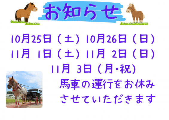 馬体調整のため馬車の運行をお休みさせていただきます。