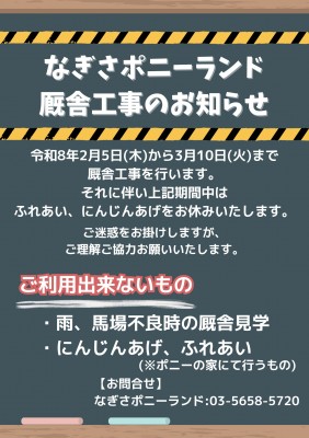 - 【なぎさ】厩舎工事に伴うご利用案内