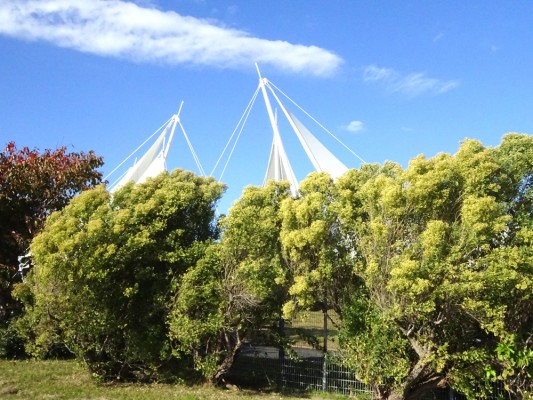 水族園の海側のフェンスのとこにハマベノキがあり、この時期花が満開でした。
