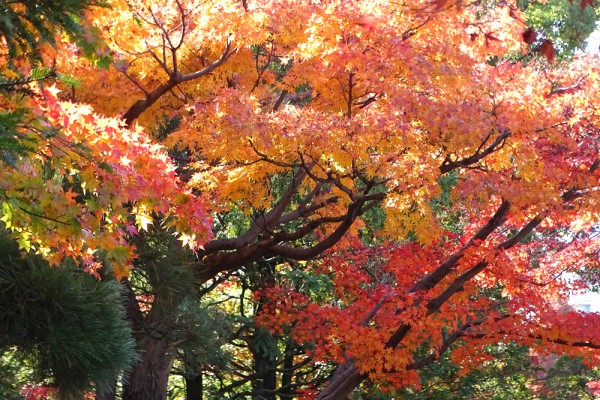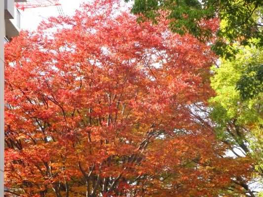 モミジの紅葉には、今年は少し遅くて葉が枯れかかっているのもありました。それでも天気も良く、紅葉がきれいに映えていました。