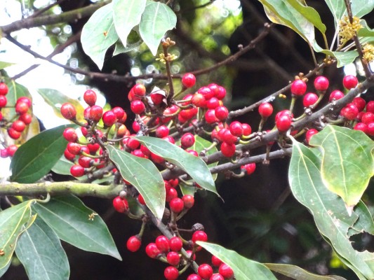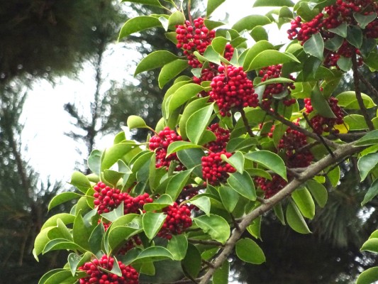 水族園の北側にクロガネモチが植えられています。この時期赤い実がビッシリ