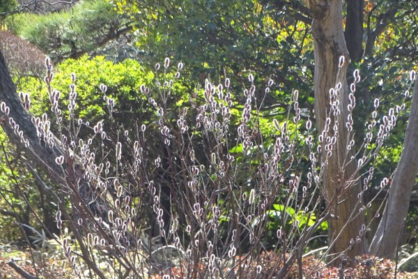 行船公園の菖蒲田の近くにあるネコヤナギも、花芽が光を浴びて輝い