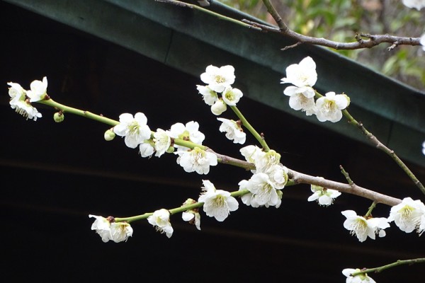 日本庭園の東屋の近くに写真のように清楚で凛とした梅が咲いていました。