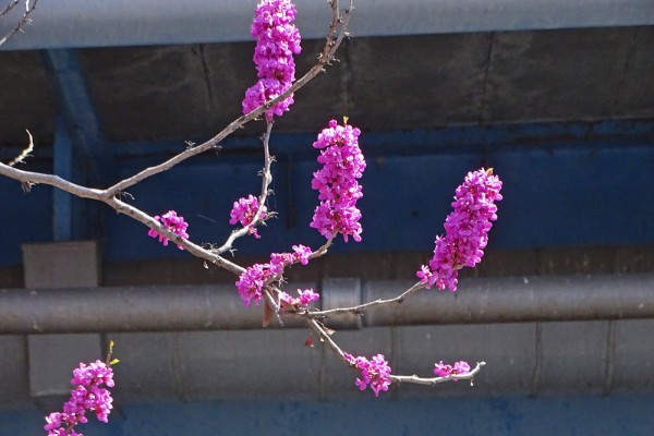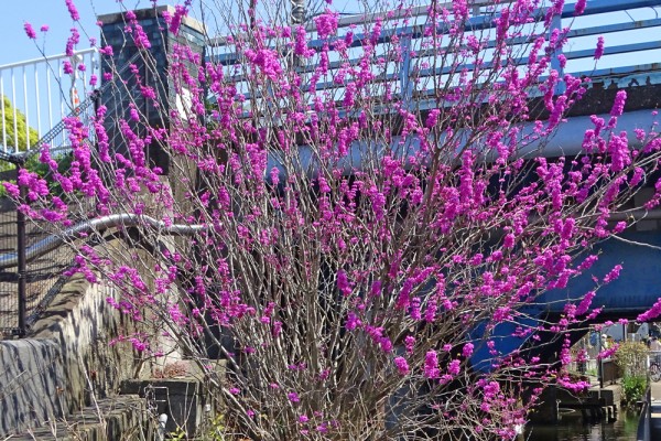 新川の船堀街道の脇に大きなハナズオウが満開でした。