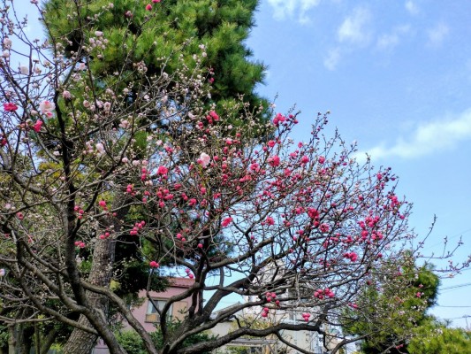 鳥類園磯の小路の角にある大きな梅です。