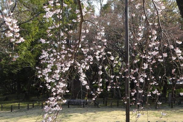 まだ満開ではなく、咲き始めでした。ヨシノシダレで有名なのは、国立博物館の玄関前のもので、樹形がきれいで、咲くときれいに丸く枝垂れています。