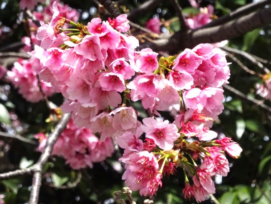 この河津桜をアップで撮ったものです。少し濃いめのピンクの花がきれ