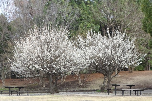 バーベキュー広場の東隅に大きな白梅が満開に咲いていました。