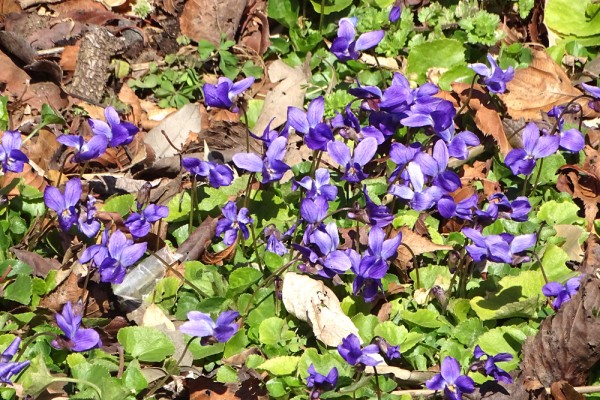 宇喜田公園のハーブ園にスミレが群生しており、かわいらしい花が沢