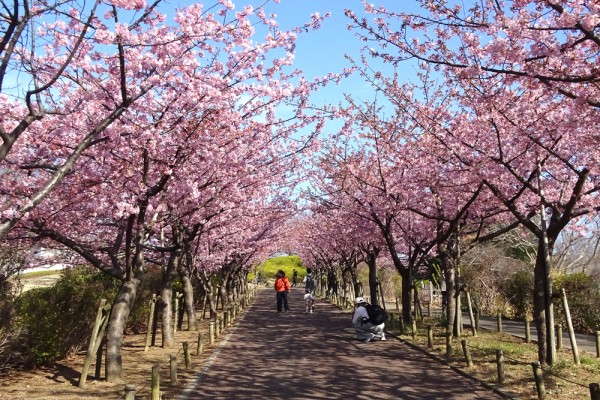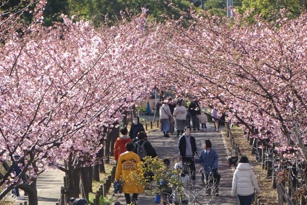 桜並木の河津桜はまだ満開ではなく、8分咲きぐらいでした。