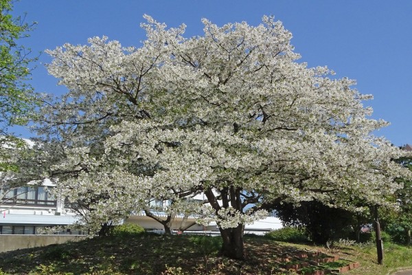 宇喜田公園のハーブエンに大きなオオシマザクラがあり、満開でした。