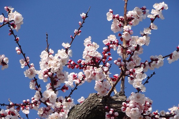 アンズの樹の上部の花を撮ったものです。