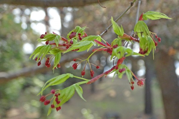 ハウチワカエデは雄花、雌花があるのですが、写真は雄花ばっかりのようで、雌花がどれか、私にはわかりませんでした。