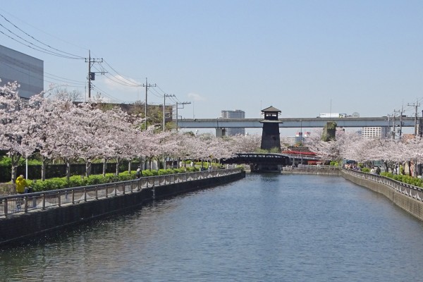 櫓橋から東側を撮ったものです。両岸の桜はほぼ満開です。