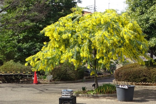 入り口の所にあるミモザの木が真っ黄色に満開でした。