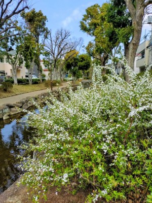 小松川境川親水公園にユキヤナギが綺麗に咲いています。近くの公園ではハナモモが可憐な花を咲かせています。桜のつぼみもふくらんで、お花見が楽しみですね♪
