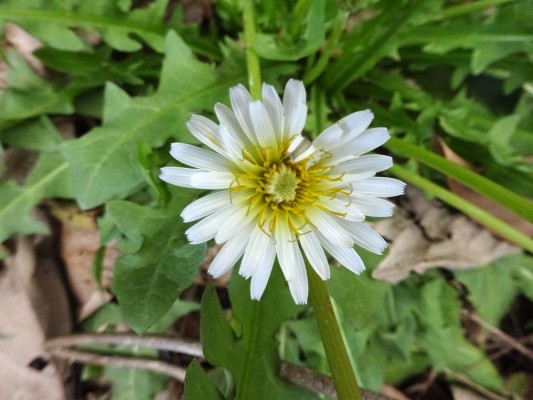 鳥類園の磯の小路にシロバナタンポポが咲いていました。花は写真のよ