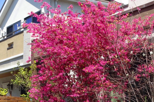 赤紫の花が木を覆うように、びっしりと咲いていました。
