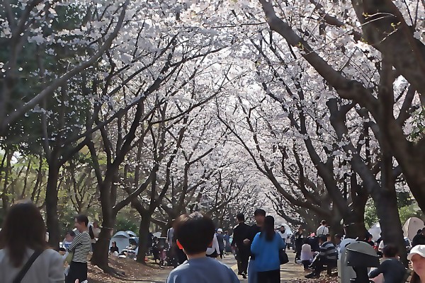 た。駅前中央通り西側の桜はまだ7分咲き程度でした。でも桜並木は満開で多くの人が花見を楽しんでいました。