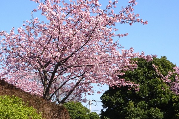 更に丘を下っていくと、真横に大きな河津桜が満開で、きれいでした。