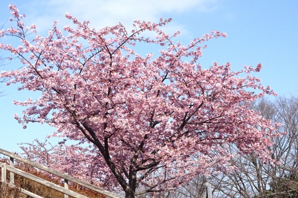 これが、この場所の全体像です。河津桜は5本あります。