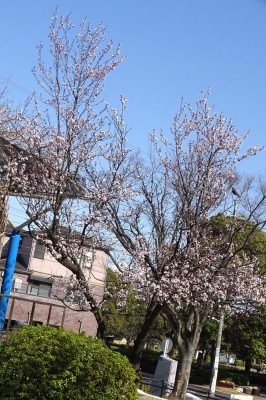 3月4日に西葛西8丁目の新田小学校に行くと、学校の庭の大寒桜が