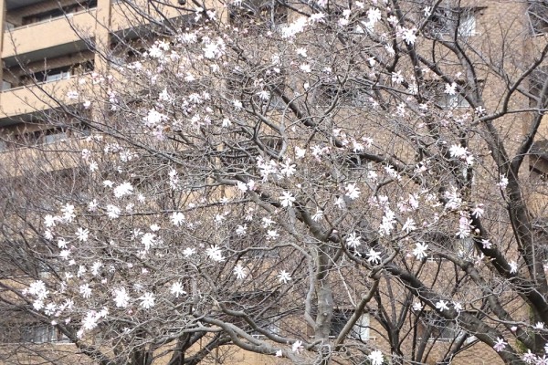 葛西臨海公園・鳥類園のコブシです。前の写真に比べて、横に広がらずに、