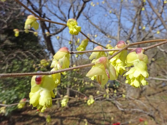 葛西臨海公園・日本庭園の裏にトサミズキが、黄色い花を誇らしげに、