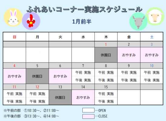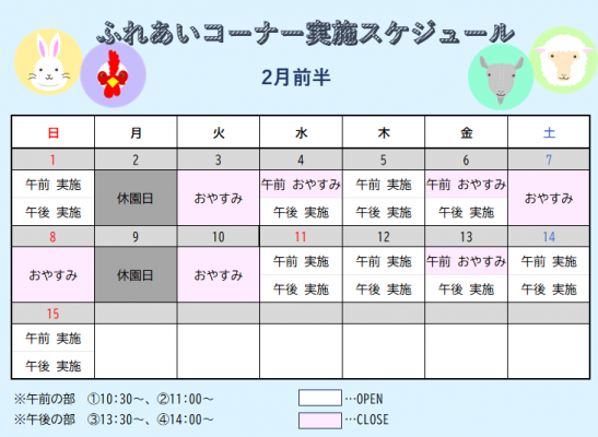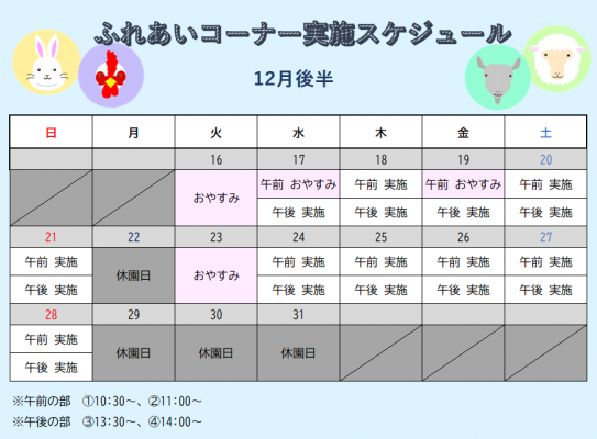※休園日の翌日のふれあいコーナーはお休みさせていただきます。