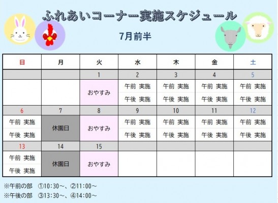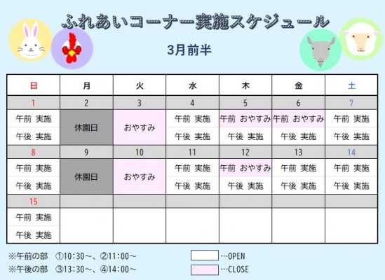 ※休園日の翌日のふれあいコーナーはお休みさせていただきます。