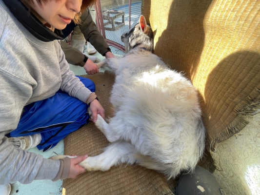 13日の朝は自分で歩いて、ふれあいコーナーまで行くことができましたが、午前中に倒れてしまい、立ち上がることが出来なくなってしまいました。