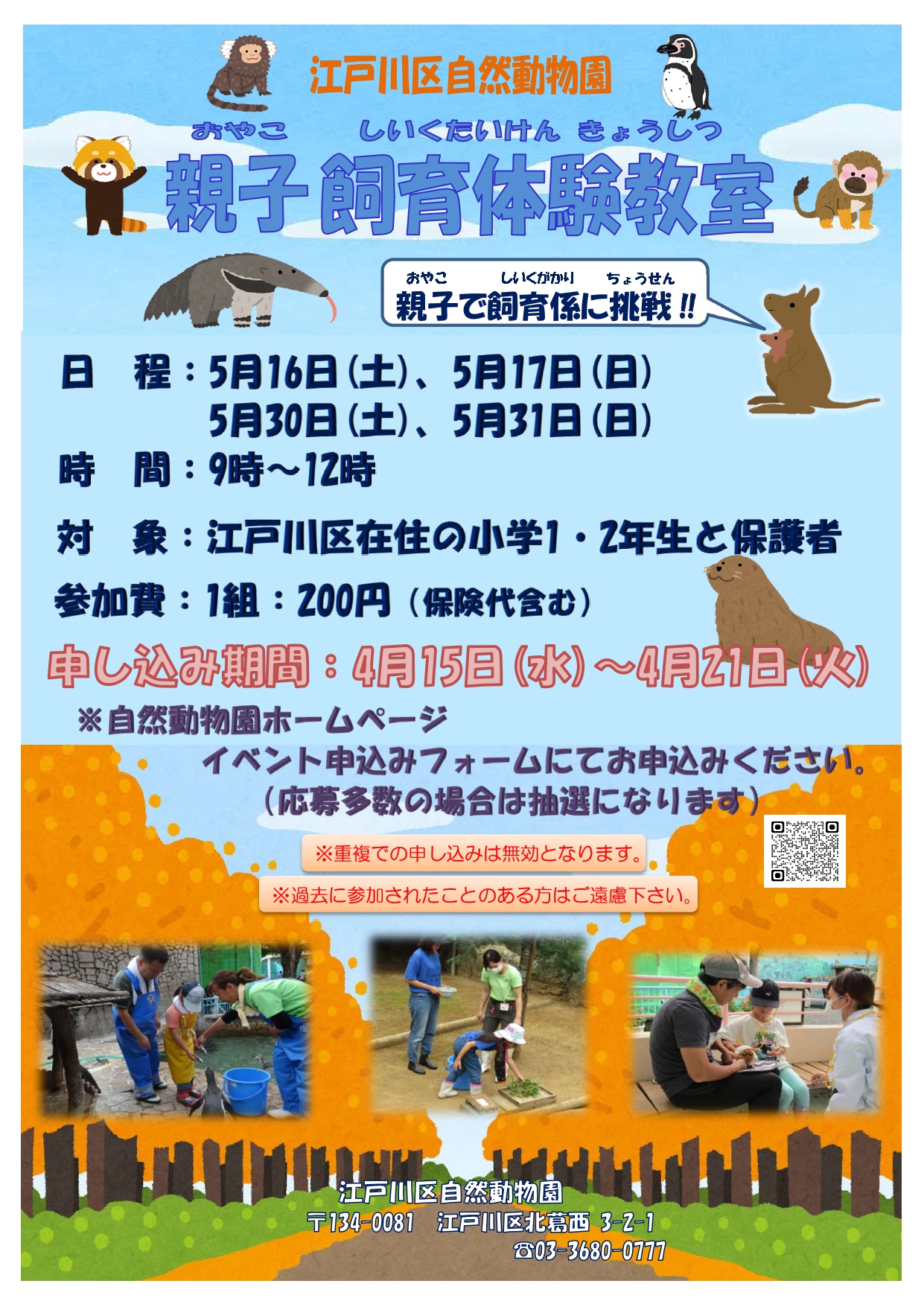 募集人数 江戸川区在住の小学1・2年生と保護者1名