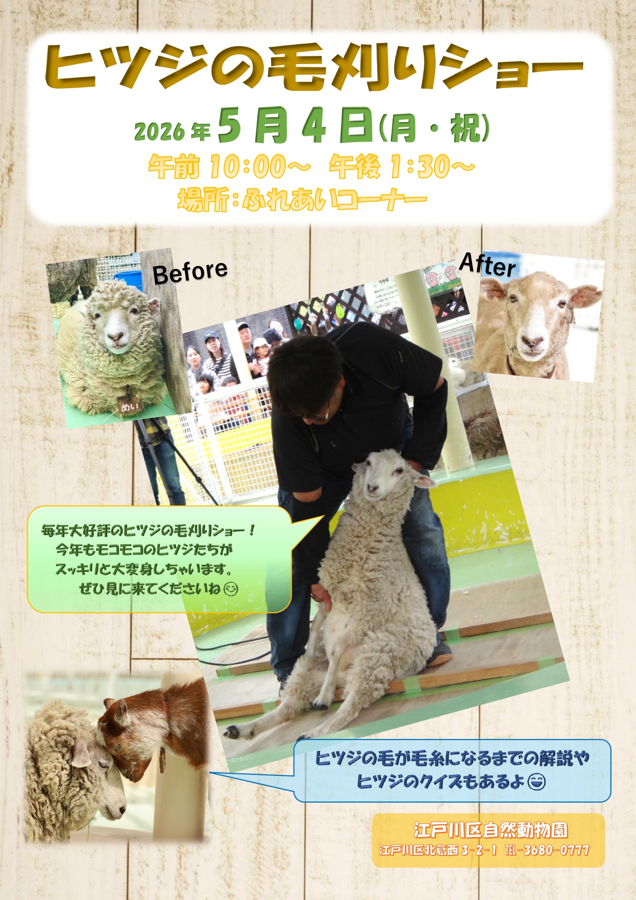 毎年恒例のヒツジの毛刈りショーを行います!