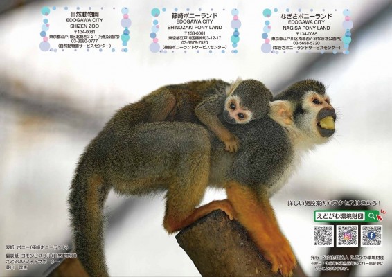 裏表紙は、リスザルの親子です!2025年は7頭生まれ、とても賑やかです。