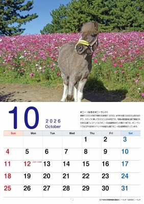 自然動物園・ポニーランドの動物達の可愛い写真を使用したカレンダーです。