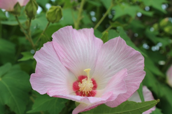 花弁の中心が赤い。確か白花は全体が白ではなかった?これが酔芙蓉(すいふよう)?