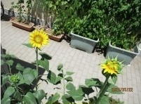 玄関にも、二階のテラスにもひまわりが咲いていますよ。