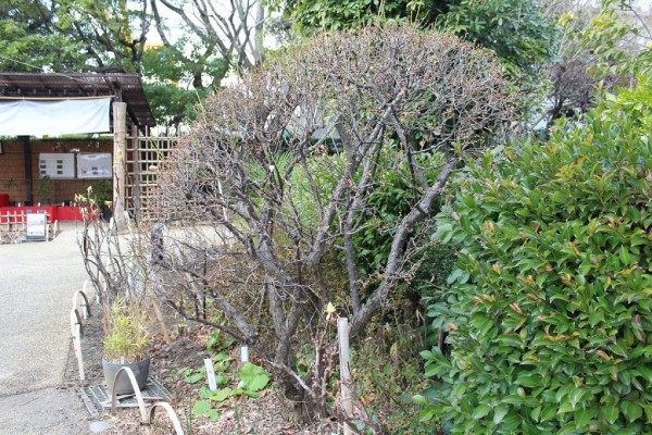 By the way, there are some plum tree in the Ichinoe-Makkoutei. People come there to see the plum flowers in early spring. Now the flowers have just started blooming.