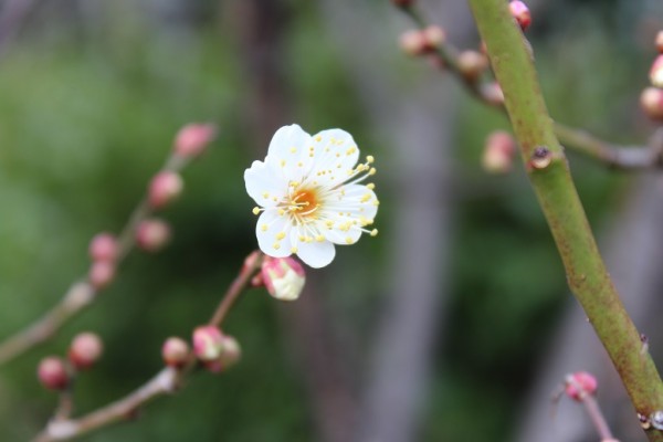 梅は「春告草」(はるつげくさ)とも呼ばれます。そんな春の気配を漂わせる一之江抹香亭の梅が一輪・二輪と咲き始めていました。その梅の様子もご紹介しましょう。