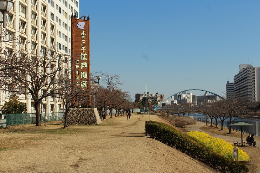 ※ふれあい橋は、江戸川区と江東区とを結ぶ人と自転車のための橋です。両地域の交流が一段と深まるようにとの願いをこめて、ふれあい橋と命名されました。※江戸川区ホームページより