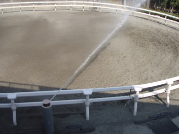 さてポニーランドでは、この雨水を馬場のスプリンクラーに活用しています。