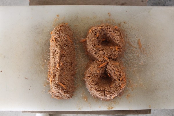 このふすまとニンジンとお水を入れ18の形に固めました。