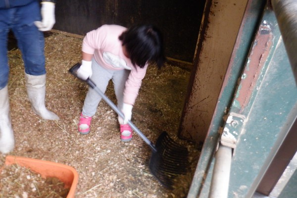 子ども達それぞれが乗馬やふれあいを行い、乗馬のできない雨の日は、馬房(馬の部屋)の掃除やブラッシング等、様々な体験をしながらスクールを進めていきました。