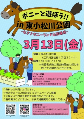 - 【なぎさ】3月13日(金)東小松川公園 移動ポニーのお知らせ